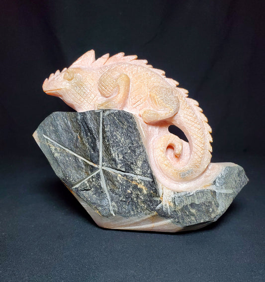 Orange Calcite Lizard Carving