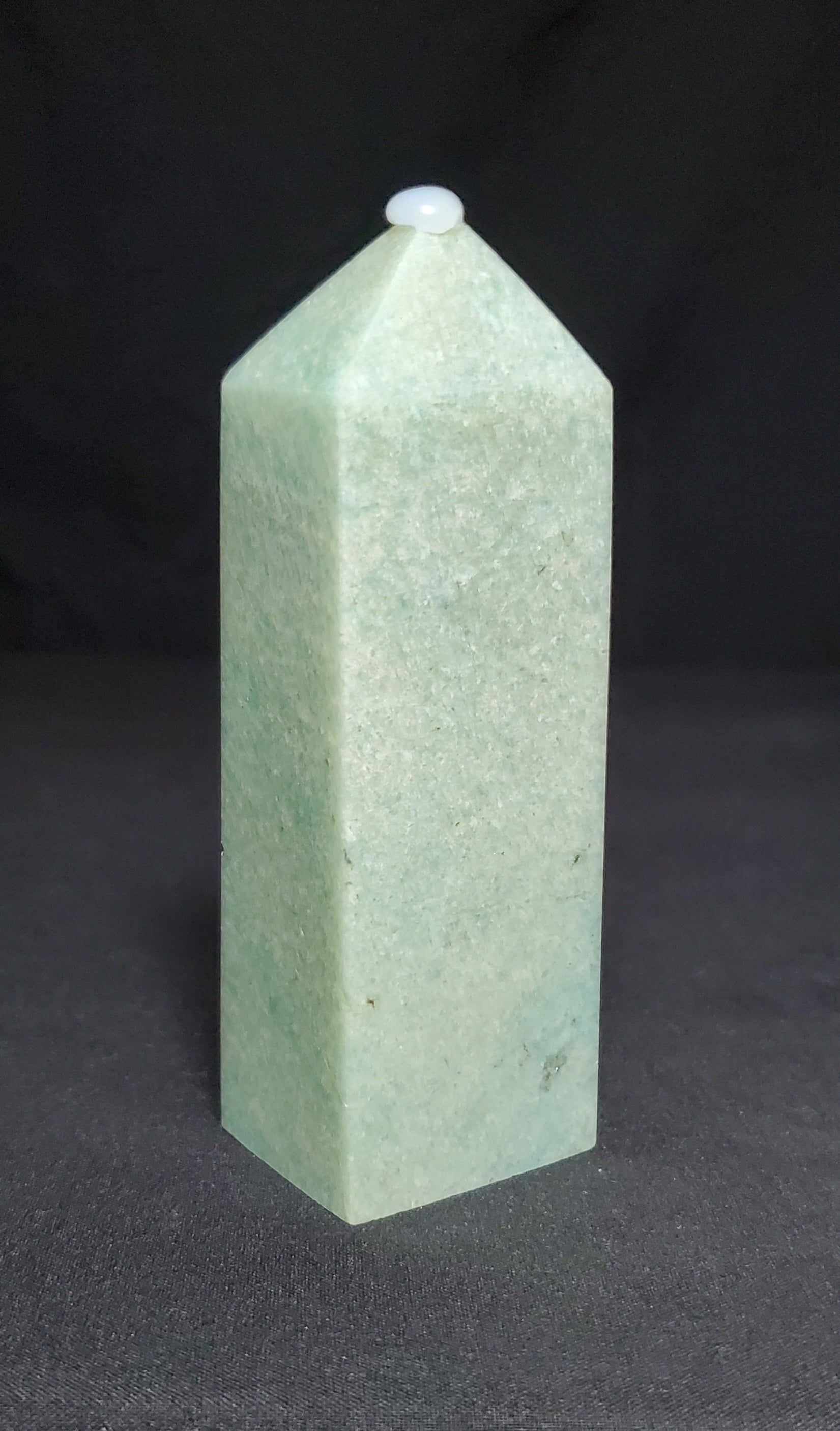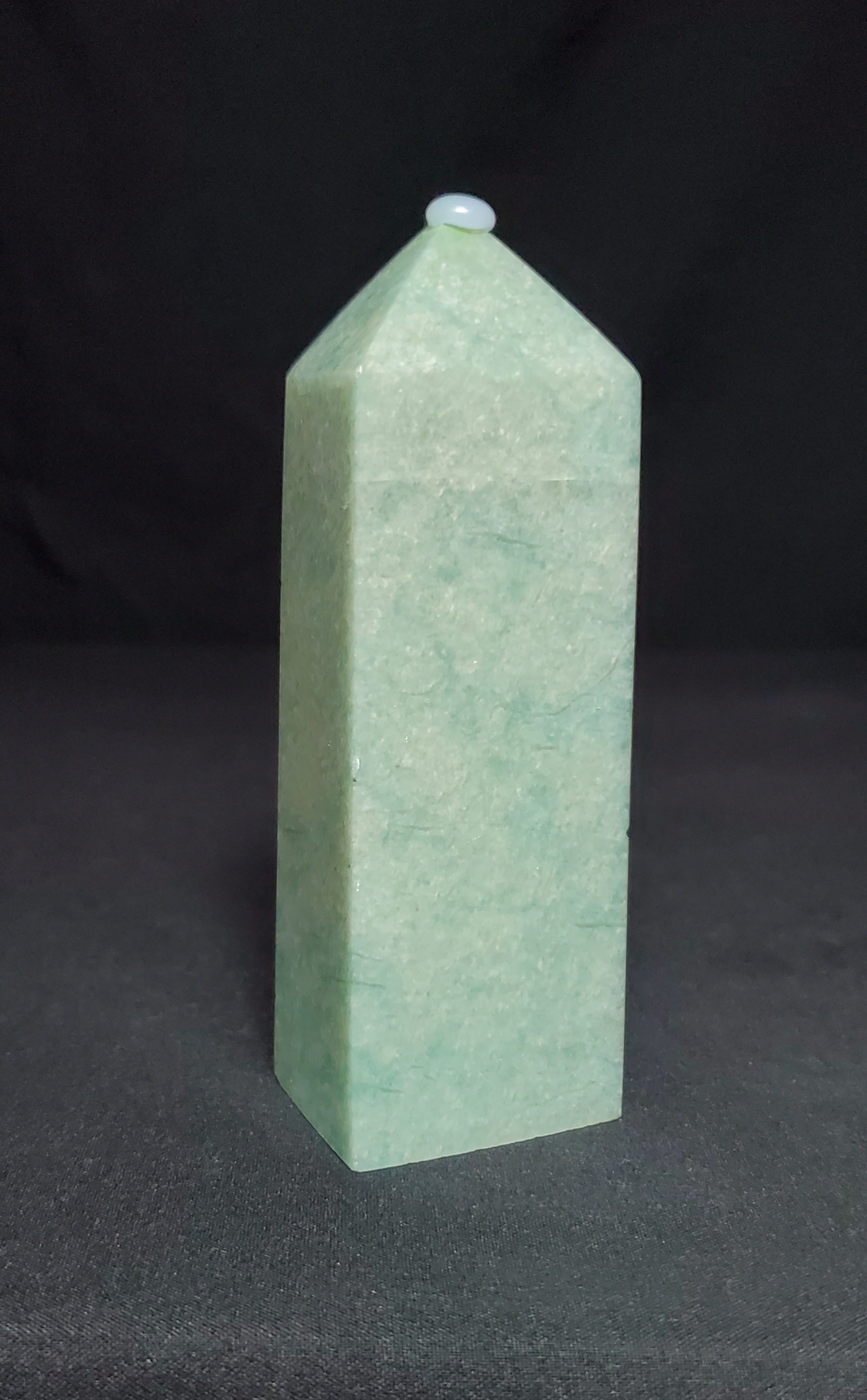 Amazonite is a mostly opaque stone textured with pale milky-white cloudiness or streaking ranging from light green to greenish blue to deep green/blue. Amazonite's soft and attractive color closely resembles nephrite and jadeite.
