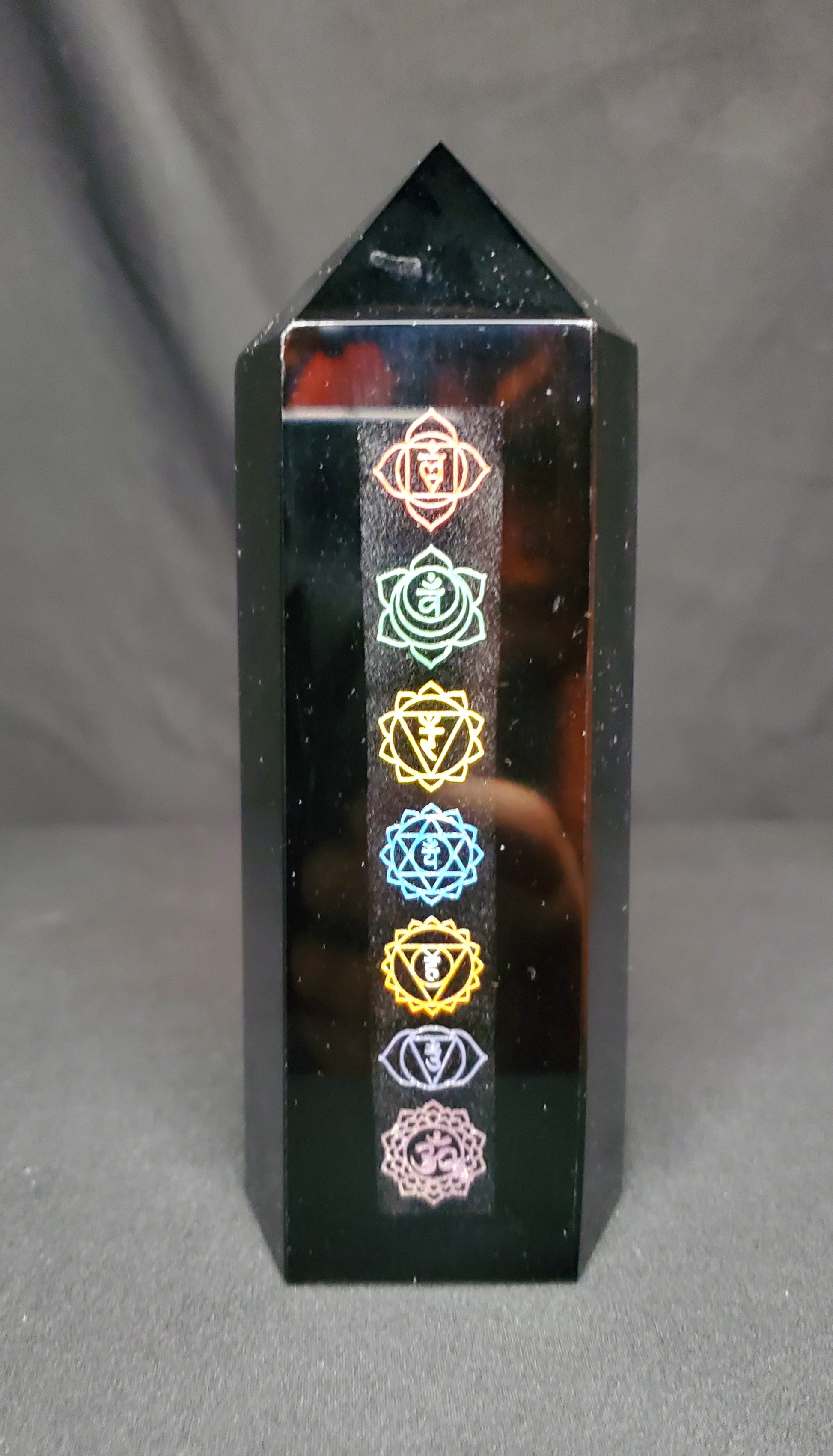 Black Obsidian Tower (7 Chakra Design)