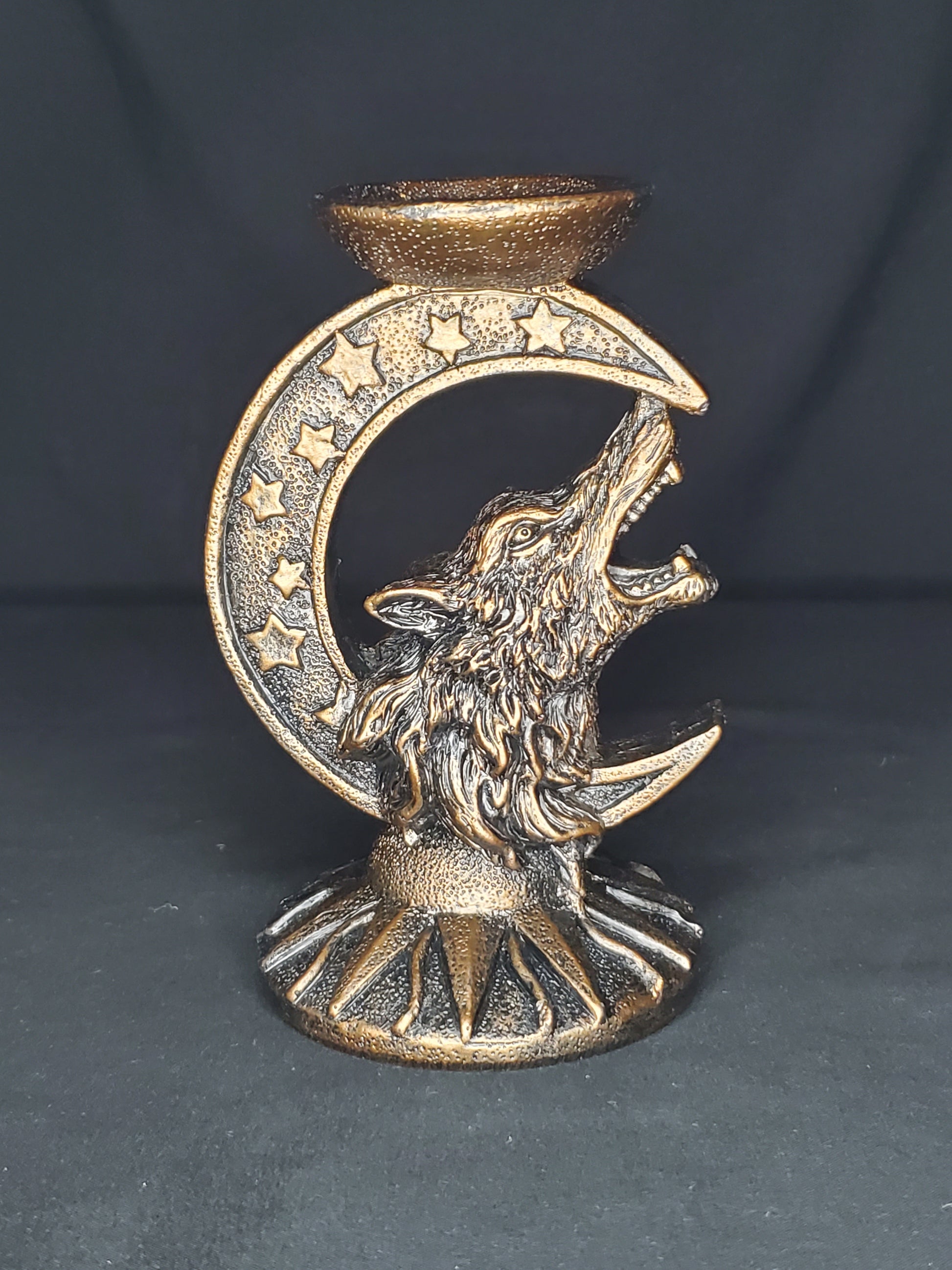 Copper Color Wolf and Moon Sphere Holder