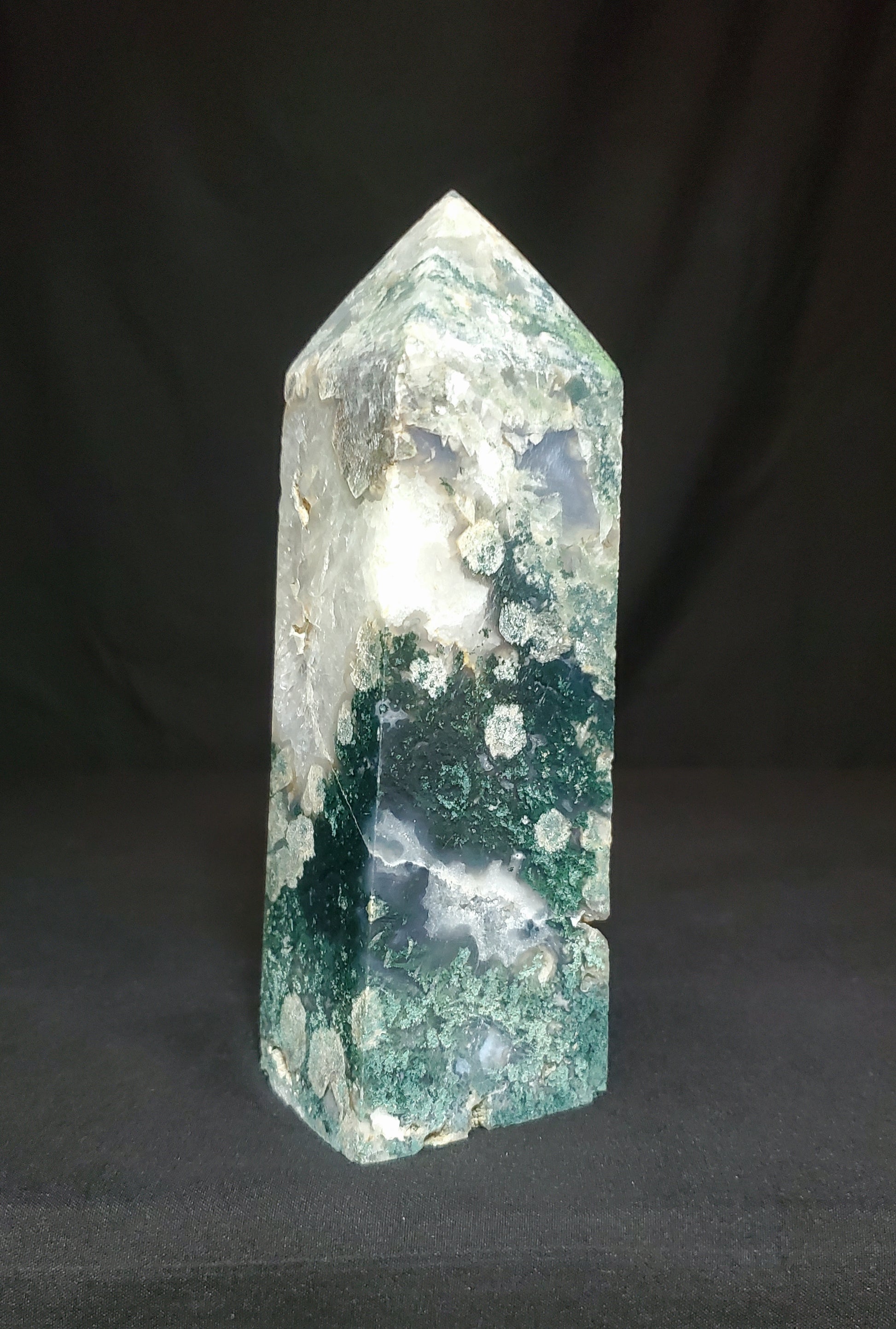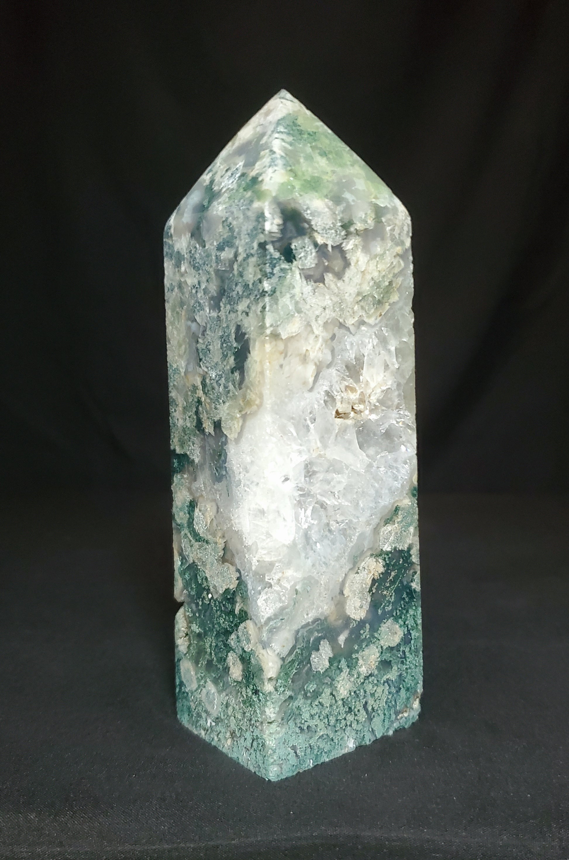 Druzy Moss Agate with Quartz Tower