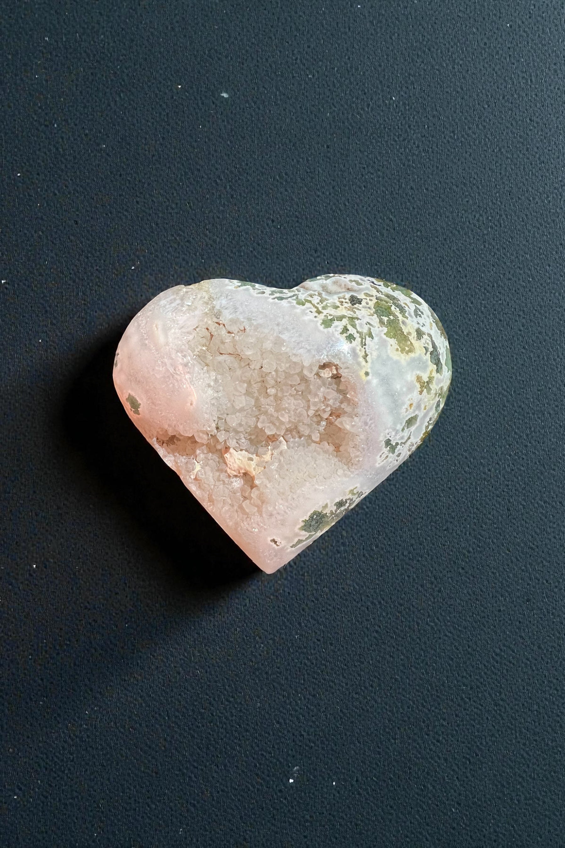 Druzy Moss Agate Heart Carving