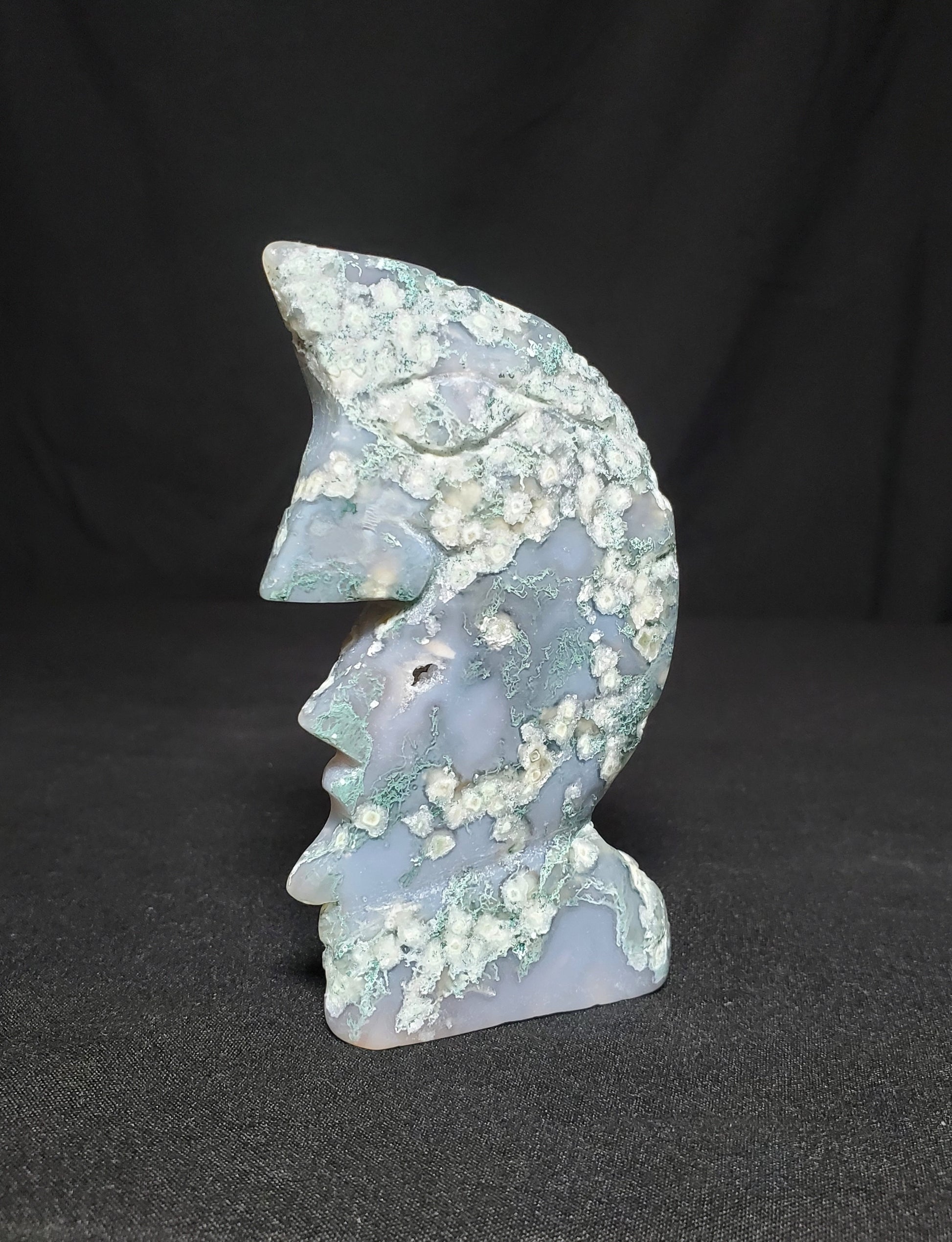 Druzy Moss Agate Moon Carving