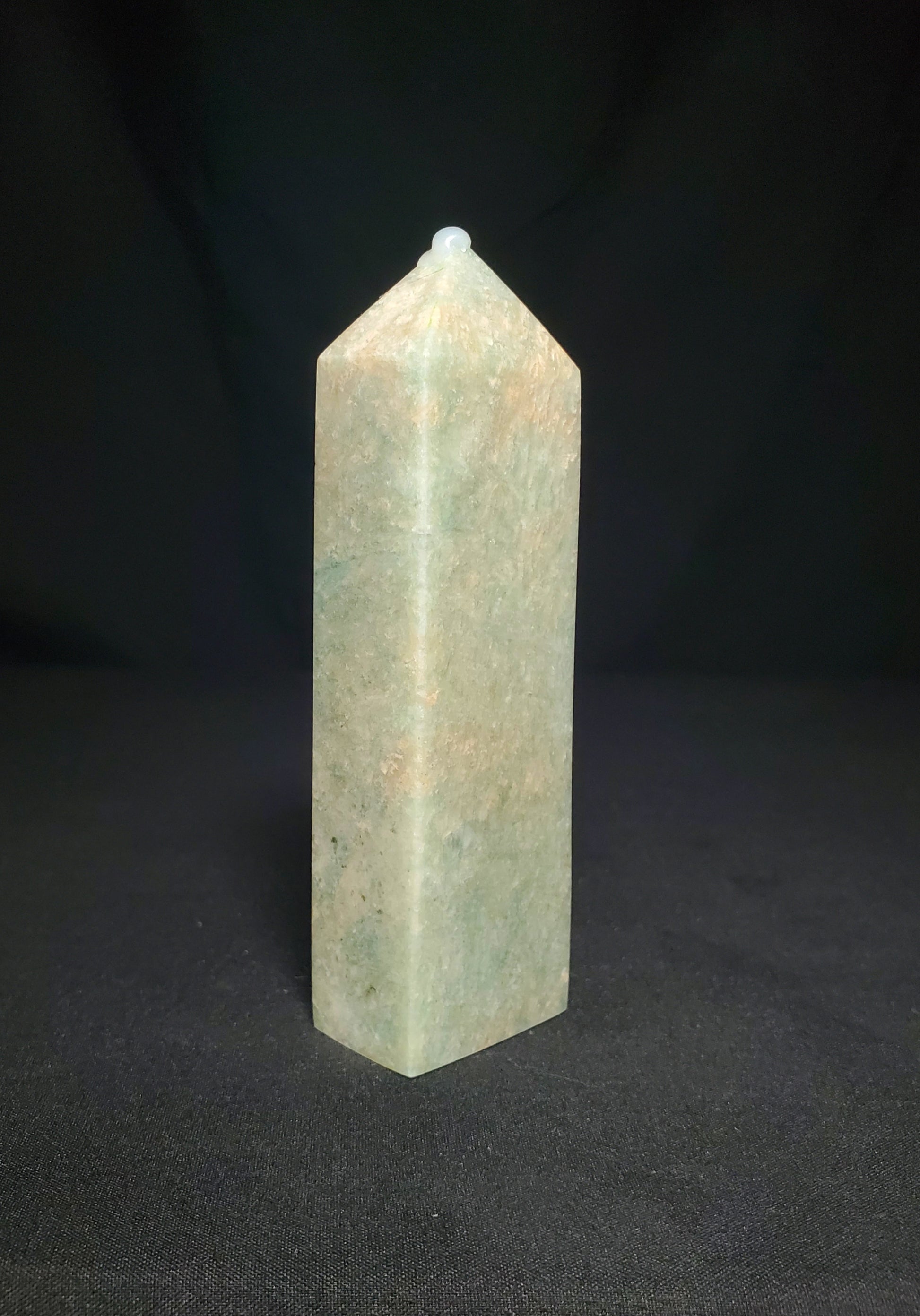 Amazonite is a mostly opaque stone textured with pale milky-white cloudiness or streaking ranging from light green to greenish blue to deep green/blue. Amazonite's soft and attractive color closely resembles nephrite and jadeite.