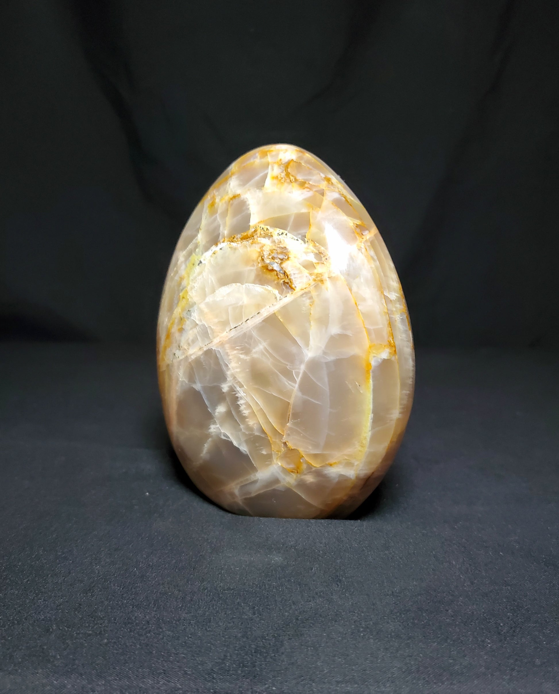 Moonstone promotes new beginnings, intuition, stability and soothes stress. It is traditionally used to aid with sleeping problems.