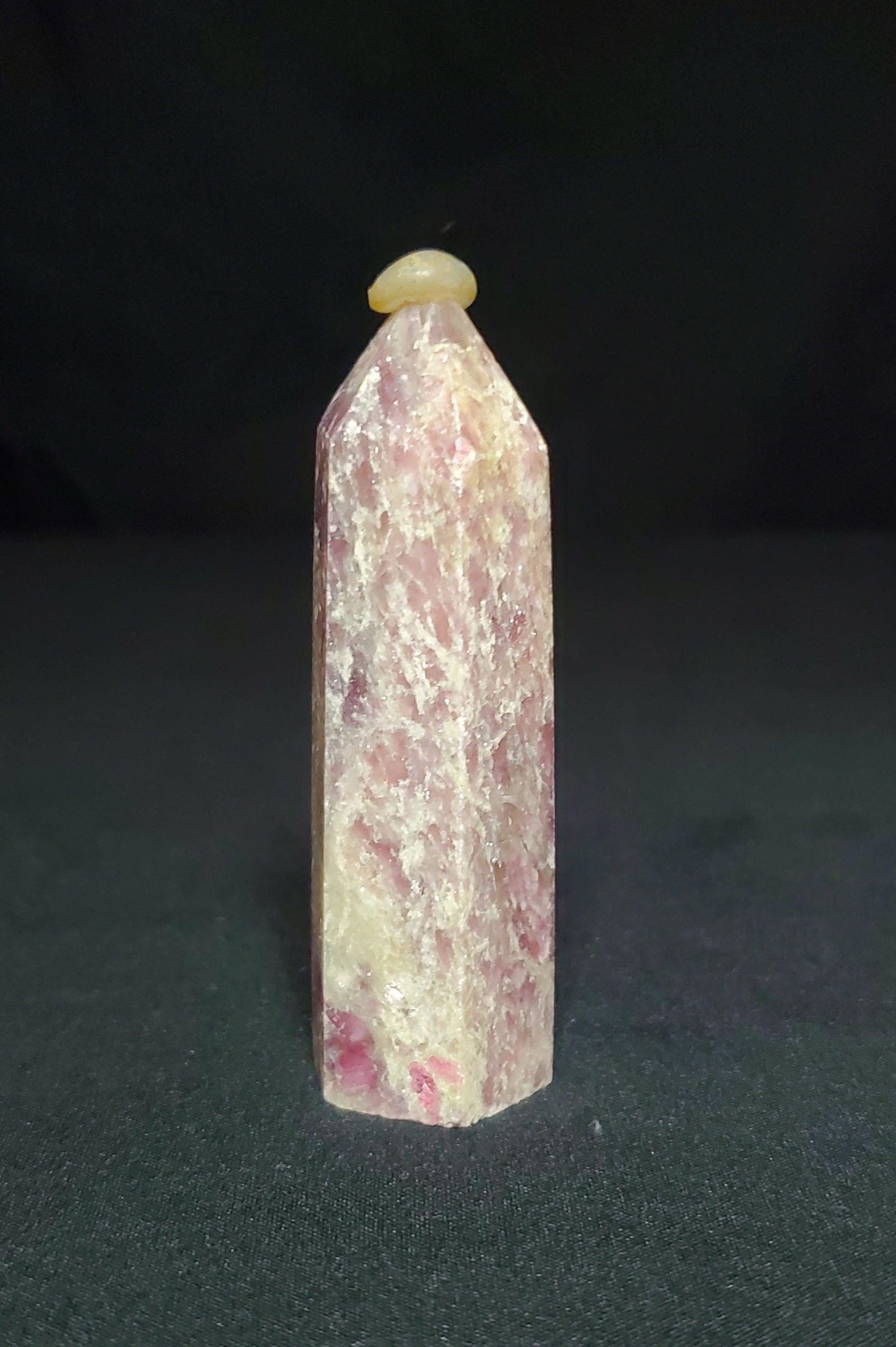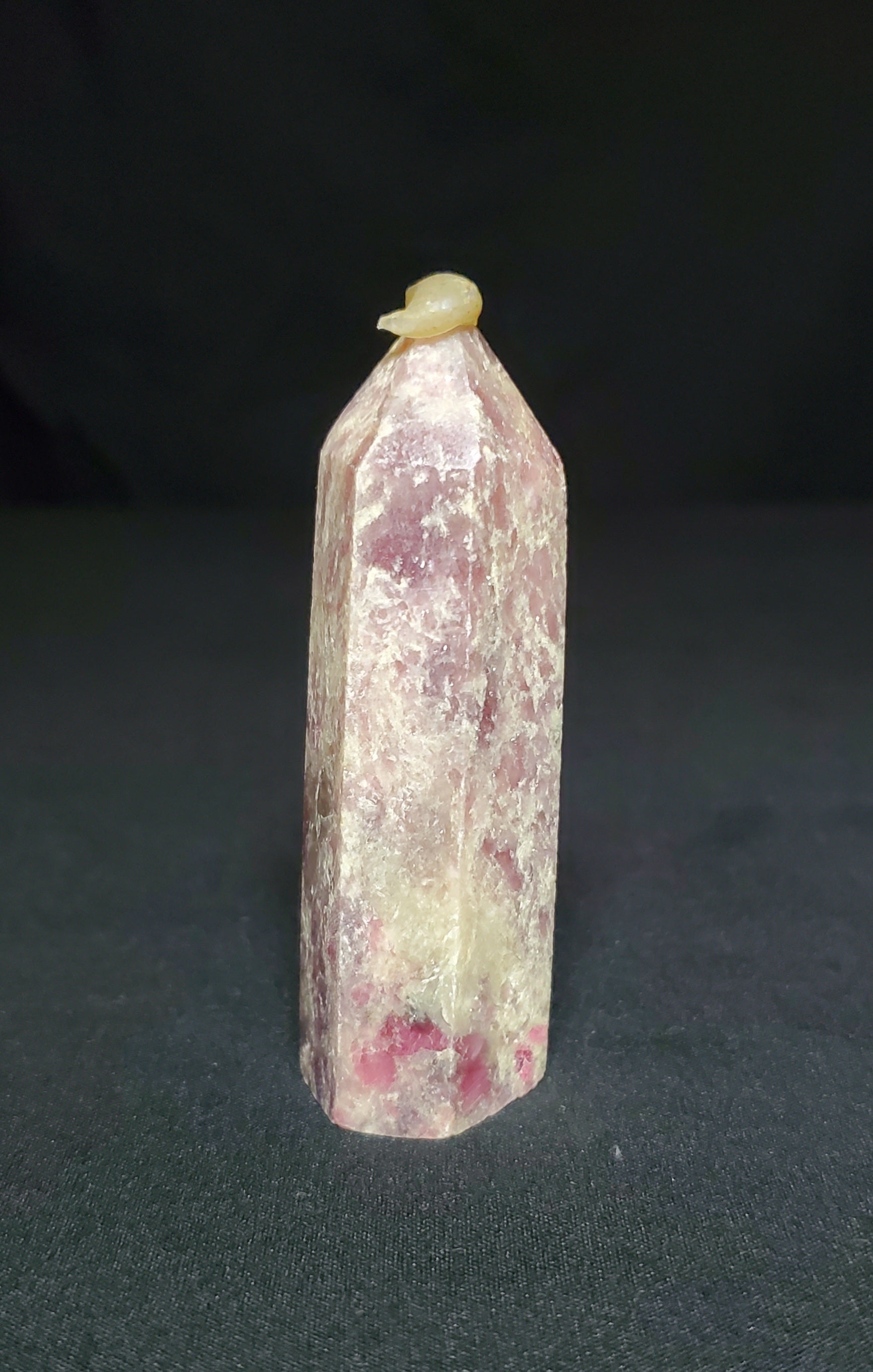 Unicorn stone is a pegmatite stone that is a powerful but gentle combination of Pink Tourmaline, Lepidolite, Smokey Quartz, and Cleavelandite.