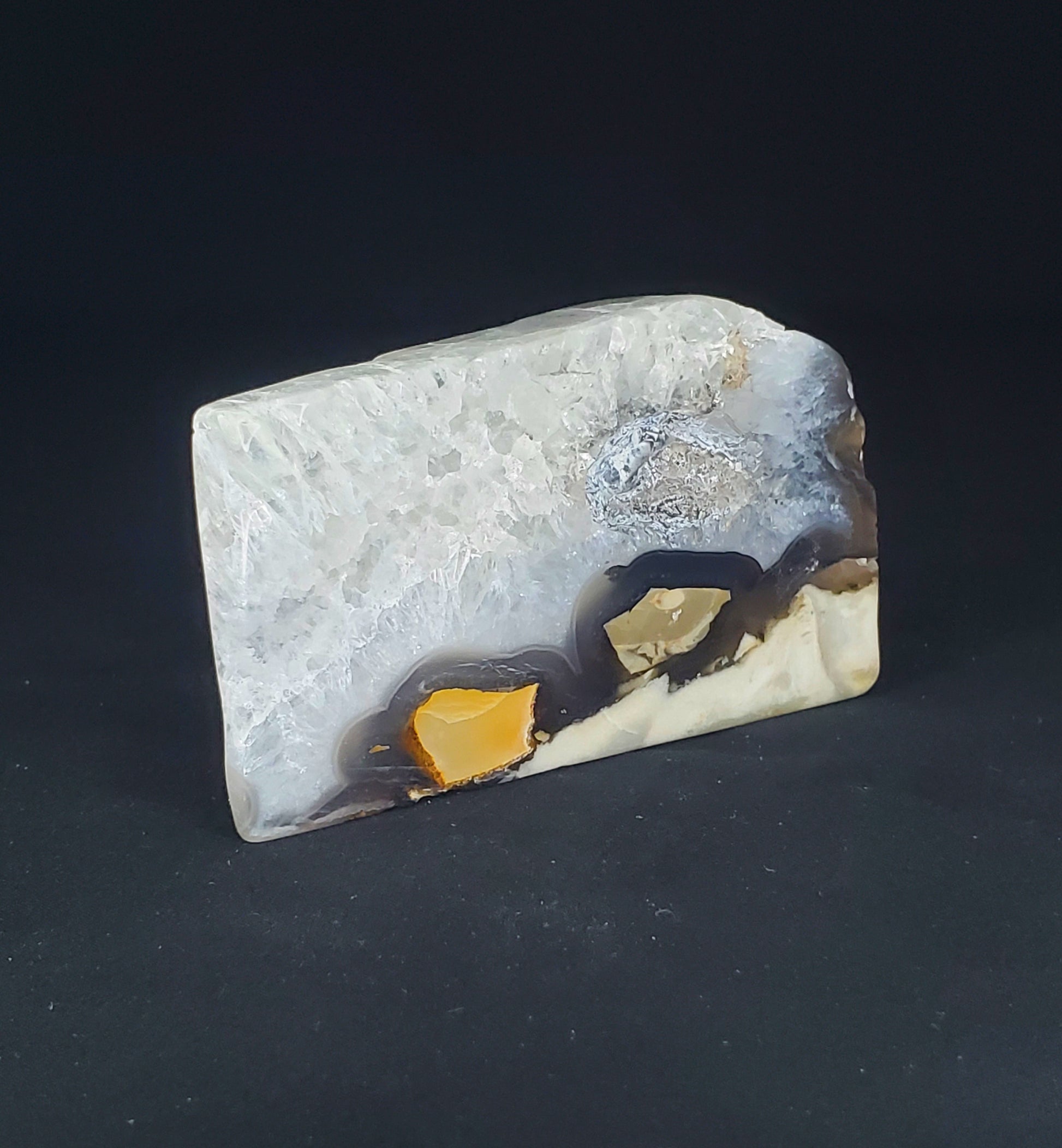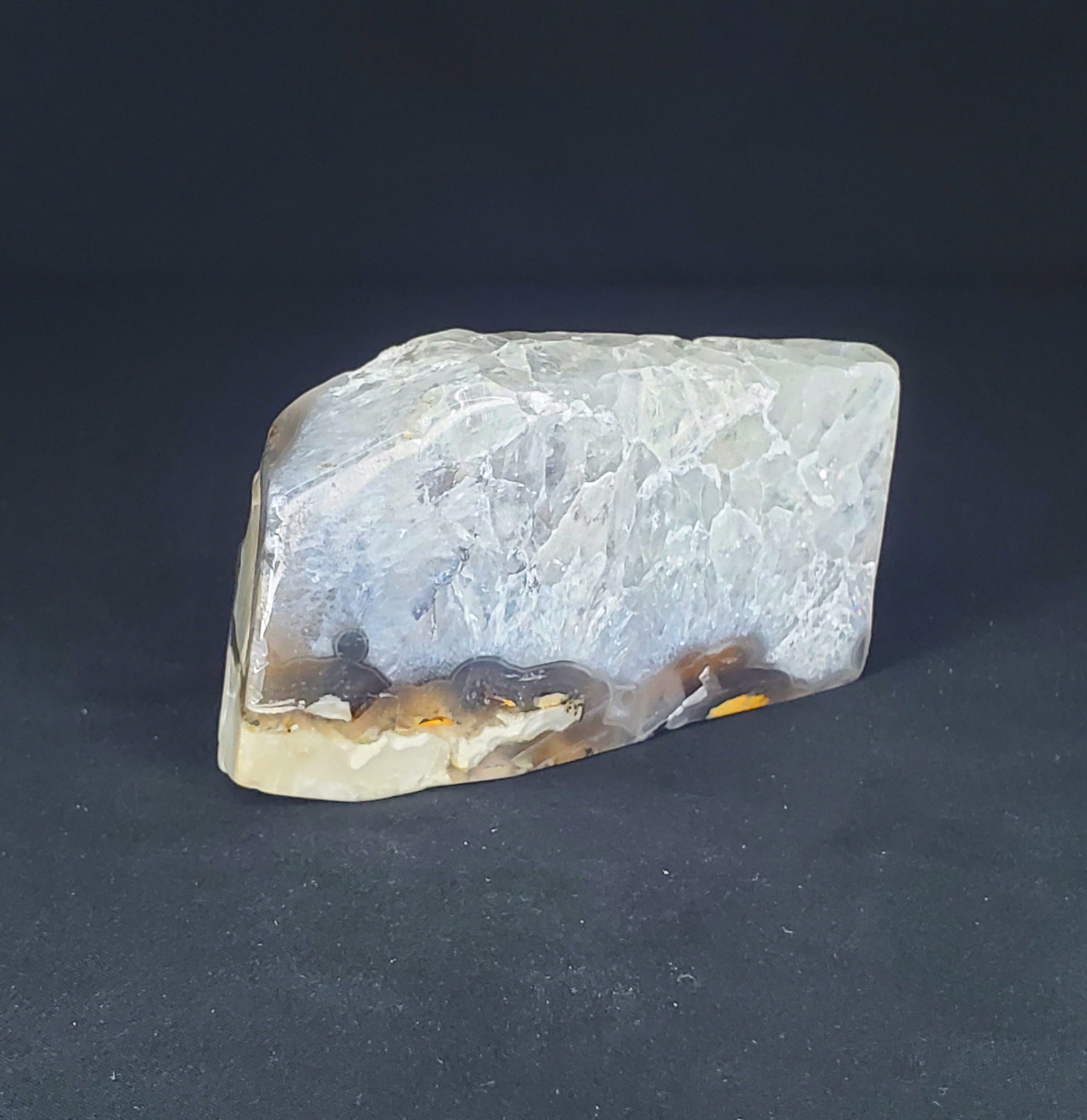Volcano Agate is a banded variety of chalcedony, which comes in a wide variety of colors. Agates are primarily formed within volcanic and metamorphic rocks.